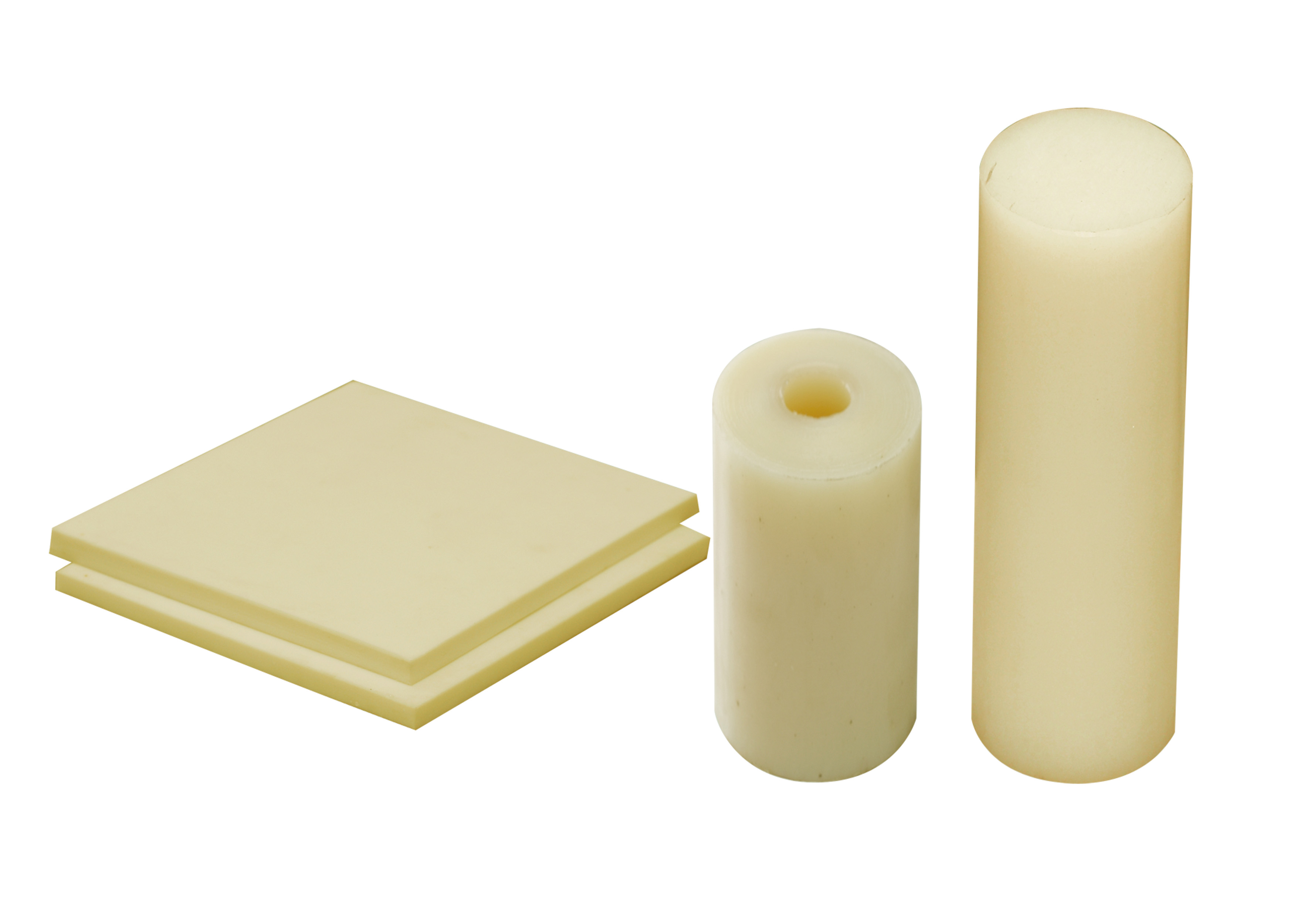 澆注型尼龍是一種將低分子化合物在澆注過程中聚合反應的尼龍材料,因聚合反應是與成型同步進行的,可將其聚合時間充分延長,使其分子量足夠的大,且加入油劑,除保留尼龍(一般成型方式用的尼龍材料分子量一般較低,分子量過大會帶來流動性差,成型困難)的重量輕、易切割、高強度、耐磨損等特點外,還具有較好的耐磨性、自潤滑、高抗沖及抗擠壓等特點,可應用于機械制造行業(yè),適用于制造各種齒輪、軸承座、軸瓦、軸套、滑板、導桿、磨擦板等。