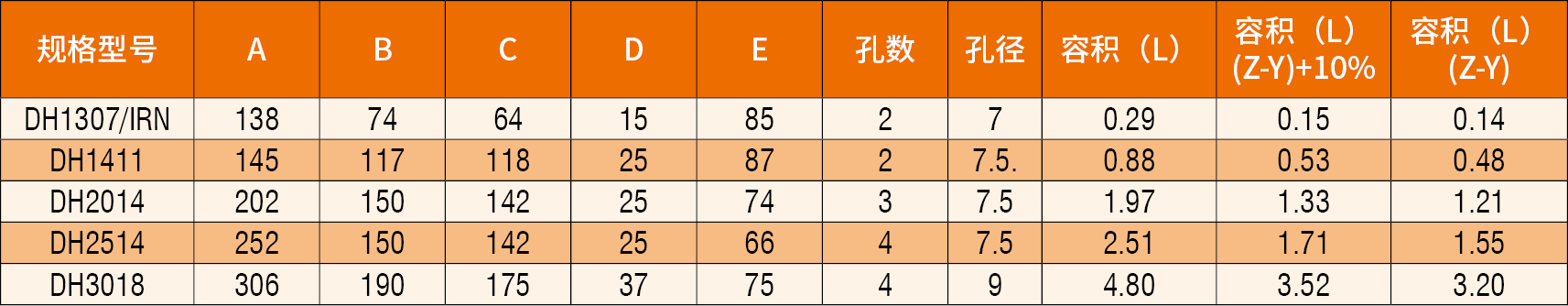 備注:上述四個(gè)規(guī)格DH1411~3018斗為國(guó)外用戶(hù)特殊定制,安裝孔處均帶凸臺(tái)(DH1307/IRN除外),故孔距及孔徑均不可調(diào)整。
