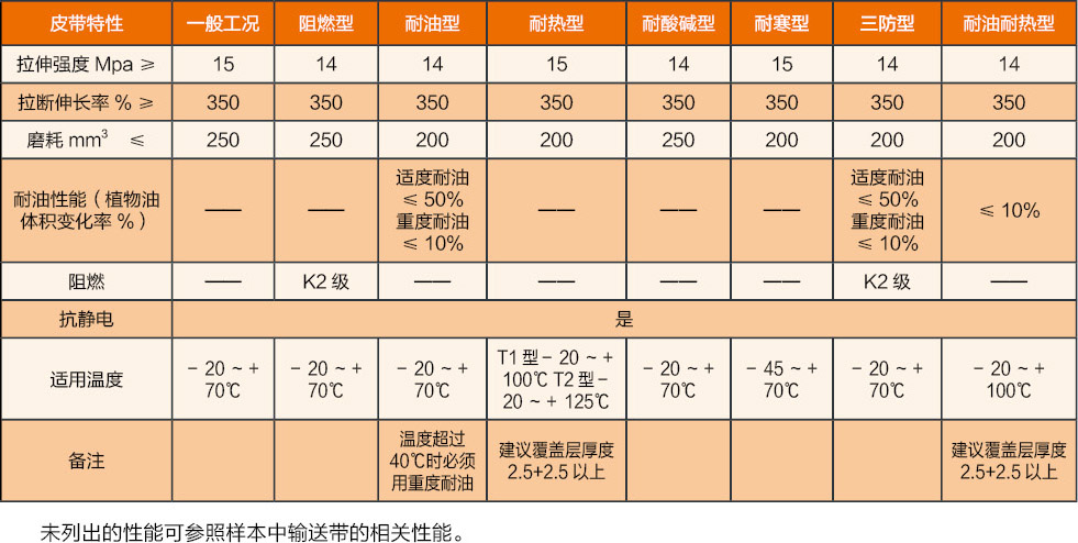 定制提升帶種類:一般工況提升機(jī)皮帶、阻燃型提升機(jī)皮帶、耐油型提升機(jī)皮帶、耐熱型提升機(jī)皮帶、耐酸堿型提升機(jī)皮帶、耐寒型提升機(jī)皮帶、耐油阻燃抗靜電提升帶(三防提升帶)、耐油耐熱型提升機(jī)皮帶。